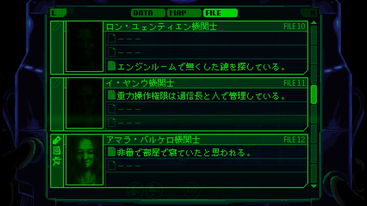 また搭乗していた「サイモン博士」のレポートや乗組員の個人記録なども残っていますので船内で何が起こったのか調査しましょう。
