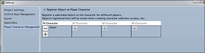 Registers characters (objects) controlled by players in-game. When it's possible to choose from multiple characters, the objects registered here will be shown when creating a character select screen or similar actions.