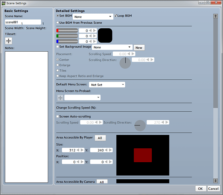 | Screen Auto-Scrolling | Sets the scrolling speed for each layer within the scene when characters move, etc. |