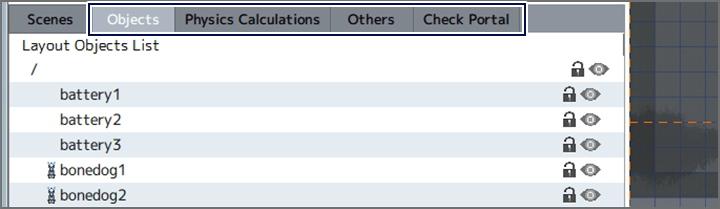 When the "Physics Calculation" tab is selected, you can view a list of placed physics calculation parts, and edit or change the settings for the selected entry.