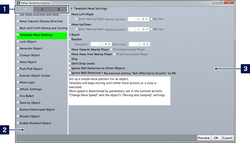 | When clicked and set to OFF, the object will not run this action. This setting also applies within the actual game. | |