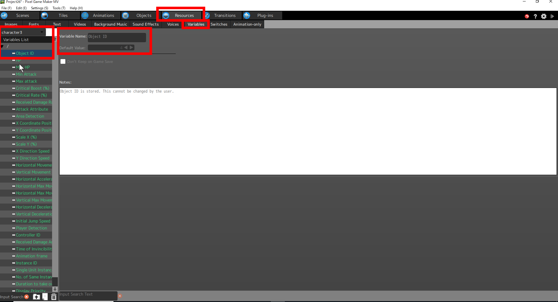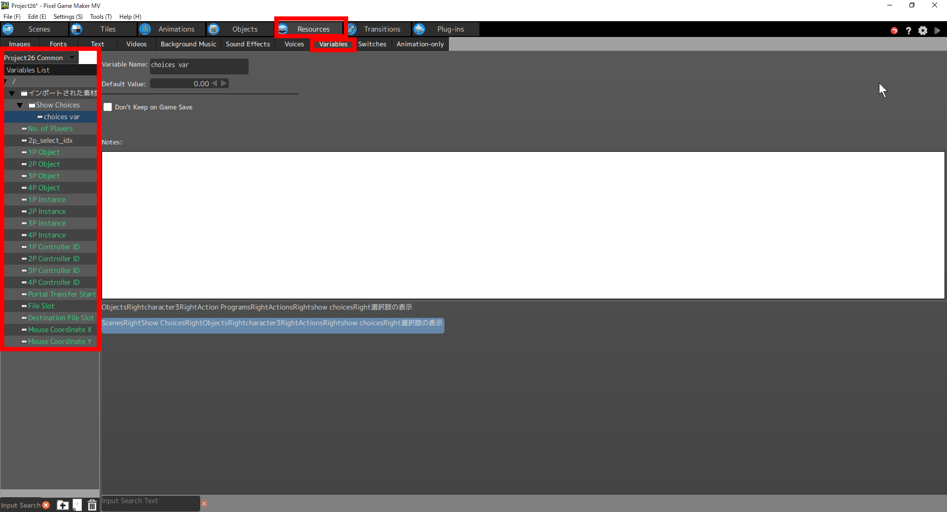 ■Display variable \V[<0/object ID/object name>,