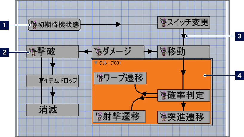 | アクションボックスやグループを、グリッド(格子状の線)に沿って配置する機能です。 | |
