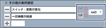 | クリックしてOFFにすると、条件の設定を反転します。例えば、「攻撃判定に当たる」が反転すると、適用される条件は「攻撃判定に当たらない」になります。 | |