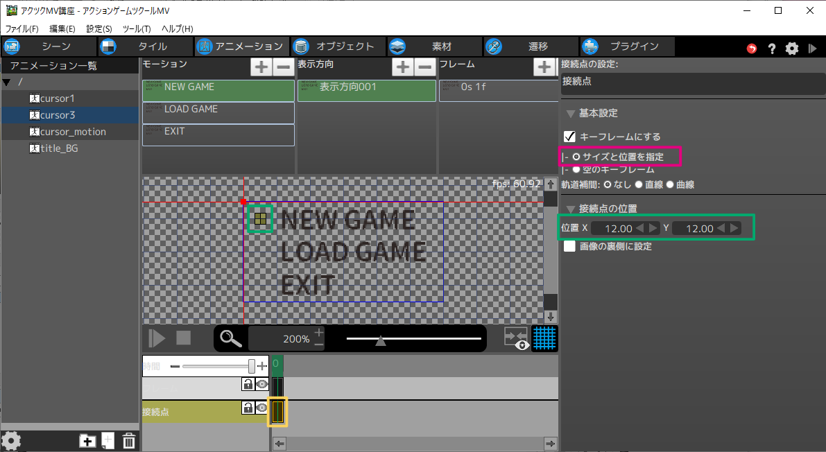 今回は画像のように、「cursor_motion」というアニメーションを追加します。