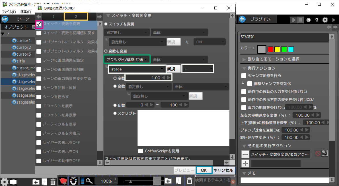 | [STAGE01]~[STAGE08] | それぞれ共通変数stage=[1.00]~[8.00] |