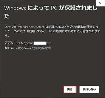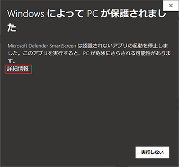 「詳細情報」をクリックし、以下の表示を確認のうえ「実行」を選択してください。