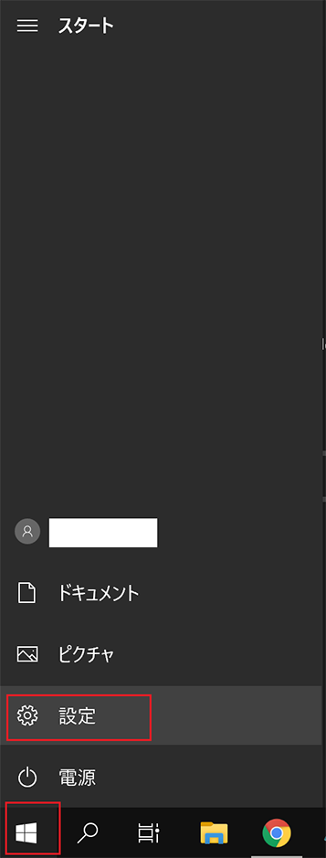 1.「スタートボタン」→「設定」を選択。