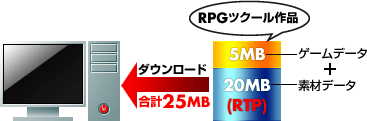 RTPが未インストールの場合、「RPGツクール」で作られたゲームをダウンロードする際、グラフィックや音楽などの素材をすべて含めたデータが必要となるため、データ容量が大きくなってしまいます。
